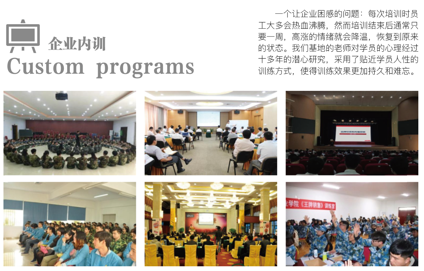 10多年軍事化訓練、企業拓展訓練經驗為您的團隊提供溝通、執行、凝聚力、團隊突破等全方位培訓方案!咨詢熱線:13027436788