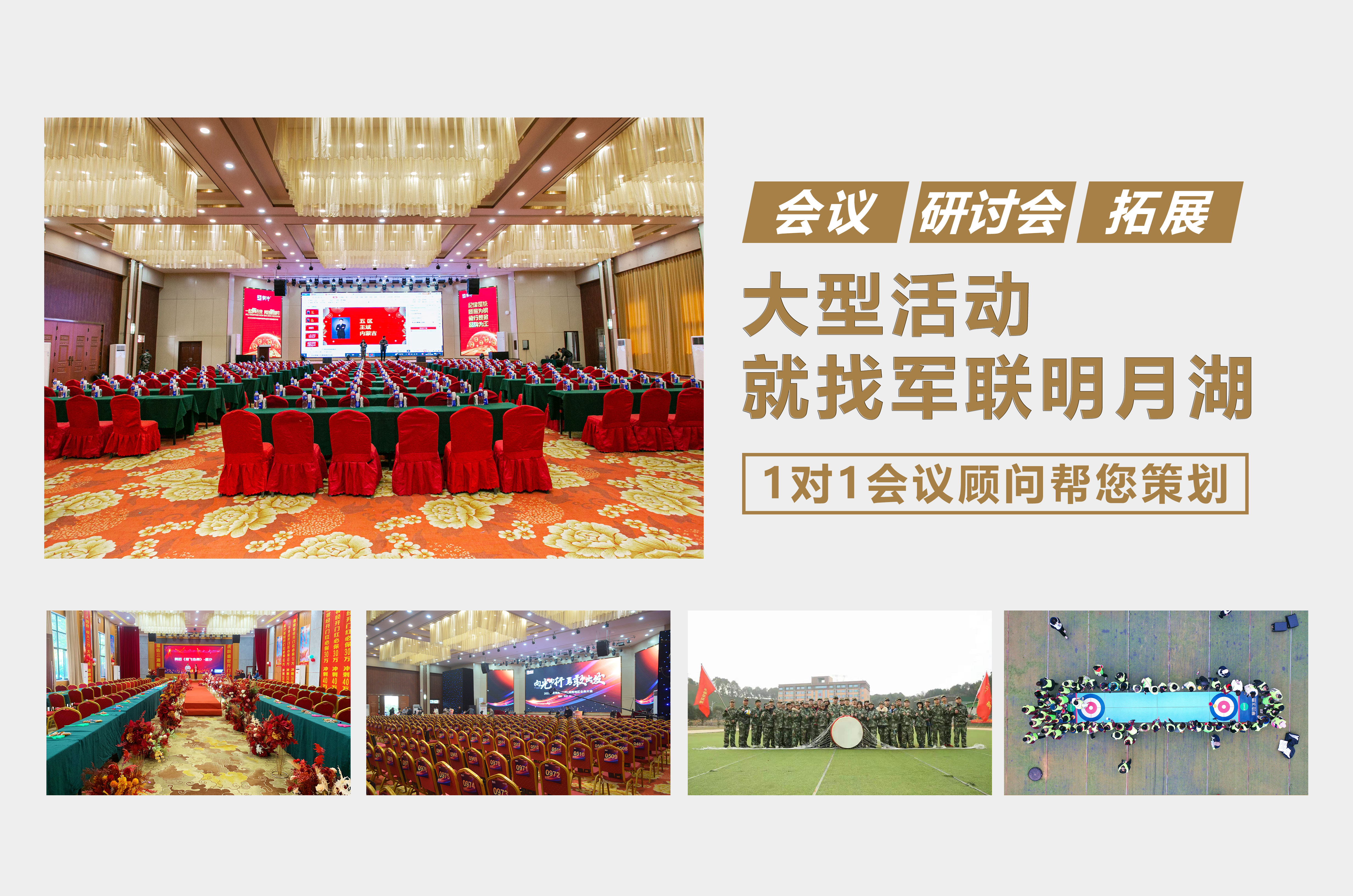 在科技與社會飛速發展的今天,人們在日常生活和工作中占有和接觸的信息量越來越大,因此人們之間的信息交流和溝通也就變得越來越頻繁,越來越重要。商務談判、產品演示、來賓會見、政令下達、指揮控制等等都是人與人之間的交流,要更好地達到目的就需要用我們一貫使用的手段——會議。軍聯集團承接各類國際會議會務會展,為企業、團隊等提供最好的交流學習平臺。會議廳規格齊全,可滿足各種會議需求從小型私密會議室,到大型100